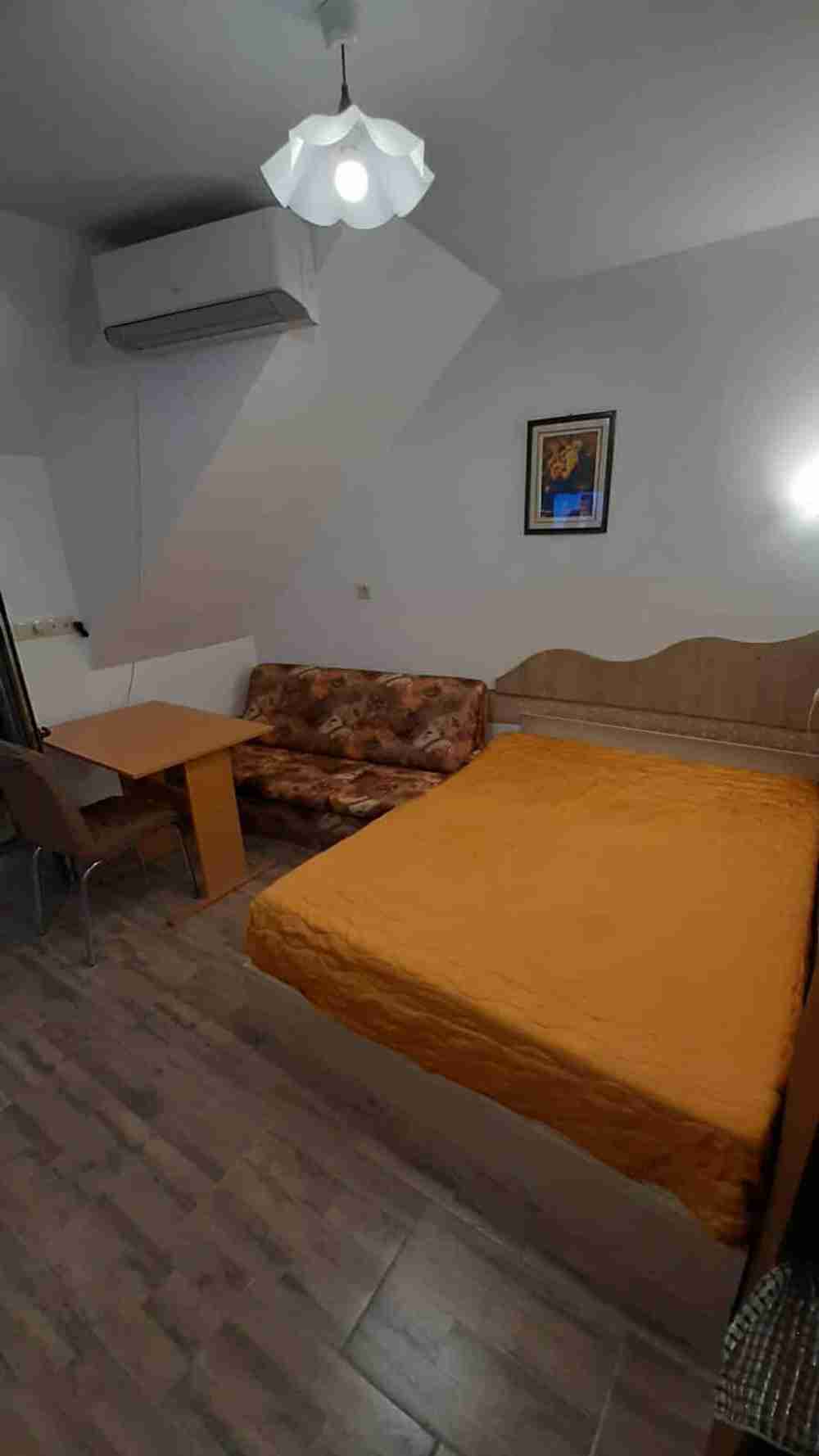 Апартамента е напълно обзаведен с всички мебели и ел. уреди + климатик.