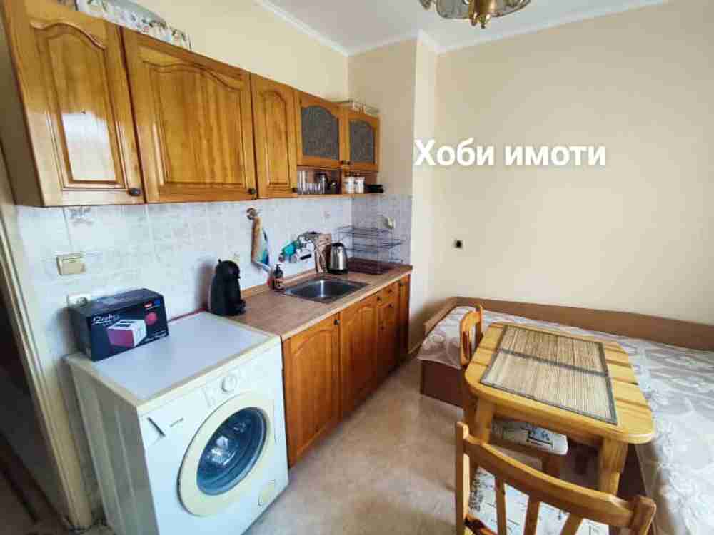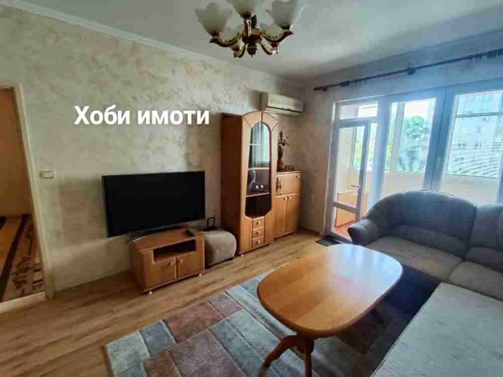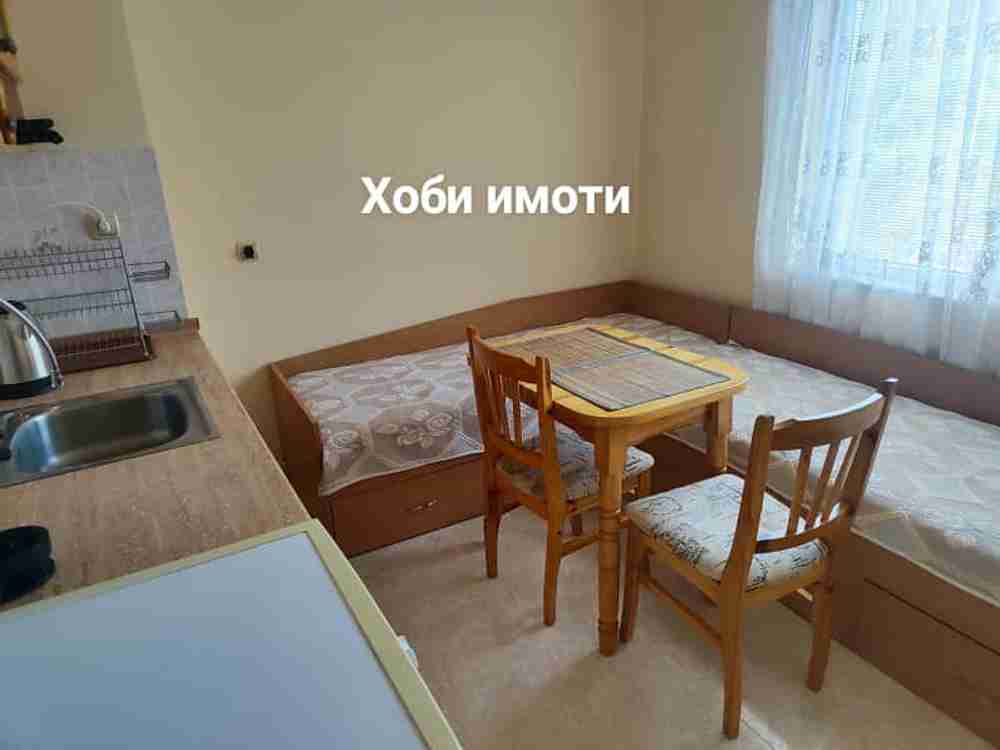 Апартамента е напълно обзаведен с всички мебели и ел. уреди + климатик.