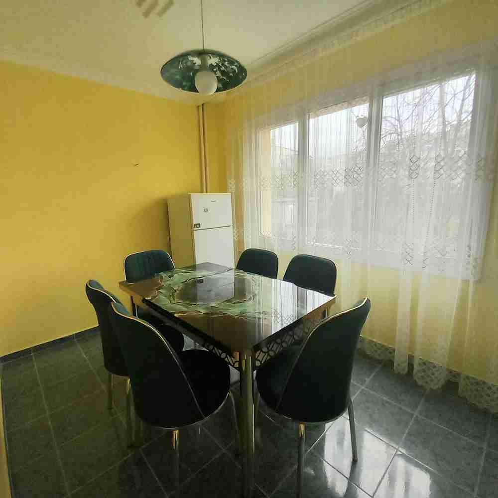 Апартаментът е ремонтиран и саниран, с качествени довършителни работи, мебели и уреди, в отличен вид и състояние, обзаведен с всичко необходимо: готварска печка, абсорбатор, пералня, хладилник, нова трапезна маса със столове, голям диван в дневната, нова секция, телевизор и др. Изцяло ПВЦ дограма, стени- латекс, подови настилки- теракота, блиндирана врата, СОТ, топла вода от централен ТЕЦ. Отдава се дългосрочно. 0889 109 765 | |