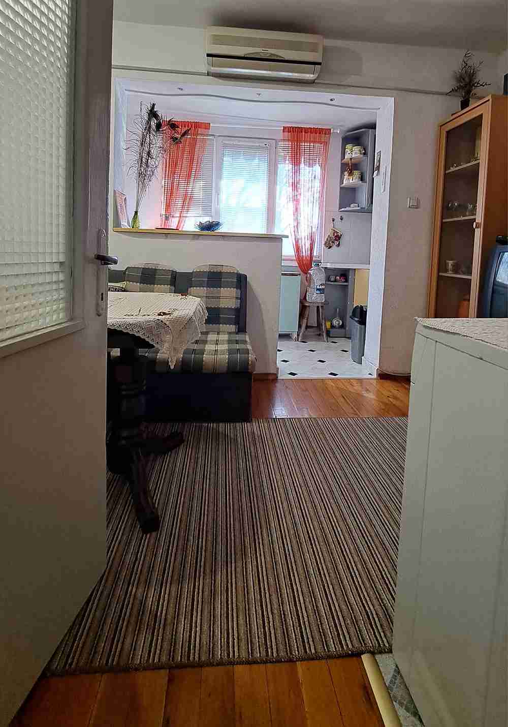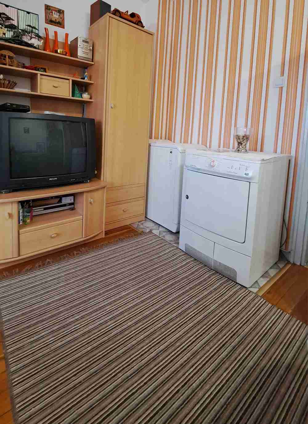 • Състоящ се от: дневен тракт - кухня, трапезария и хол в едно, спалня, стая и обща баня с тоалетна. Има хубави тераси на стаите.