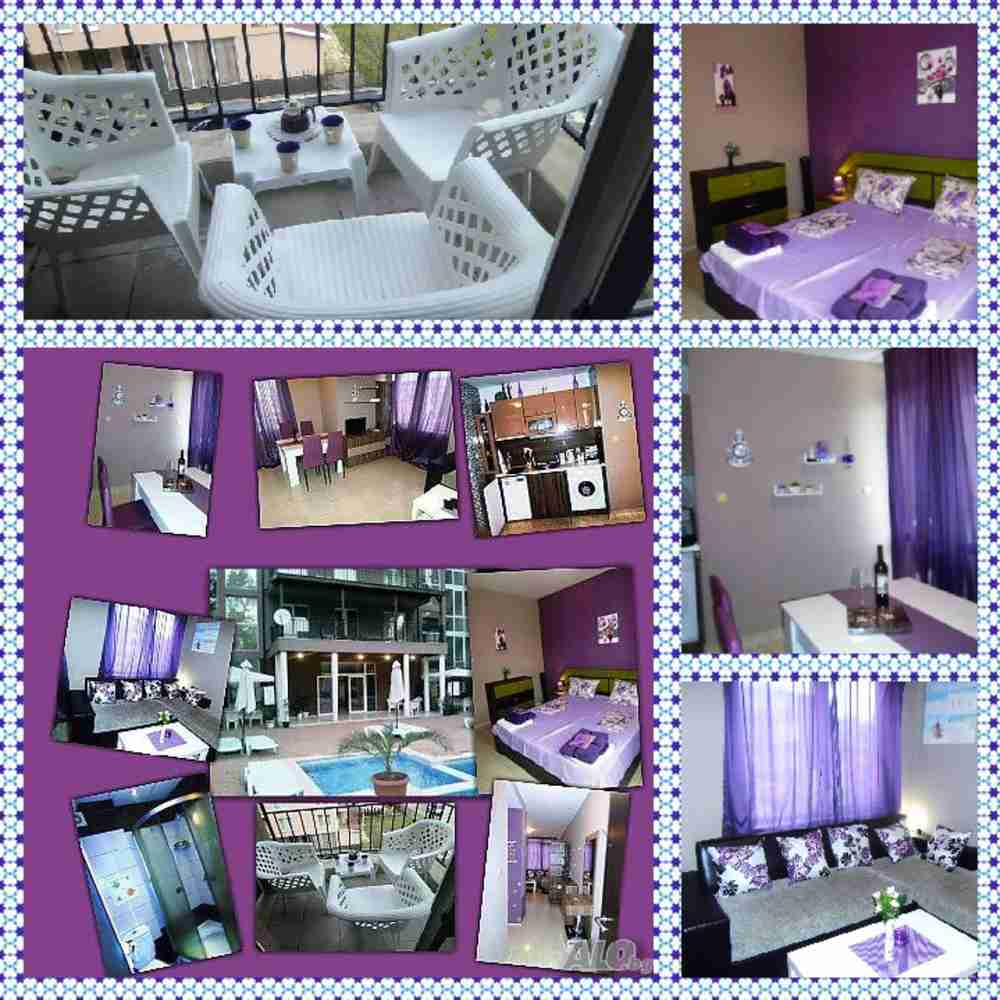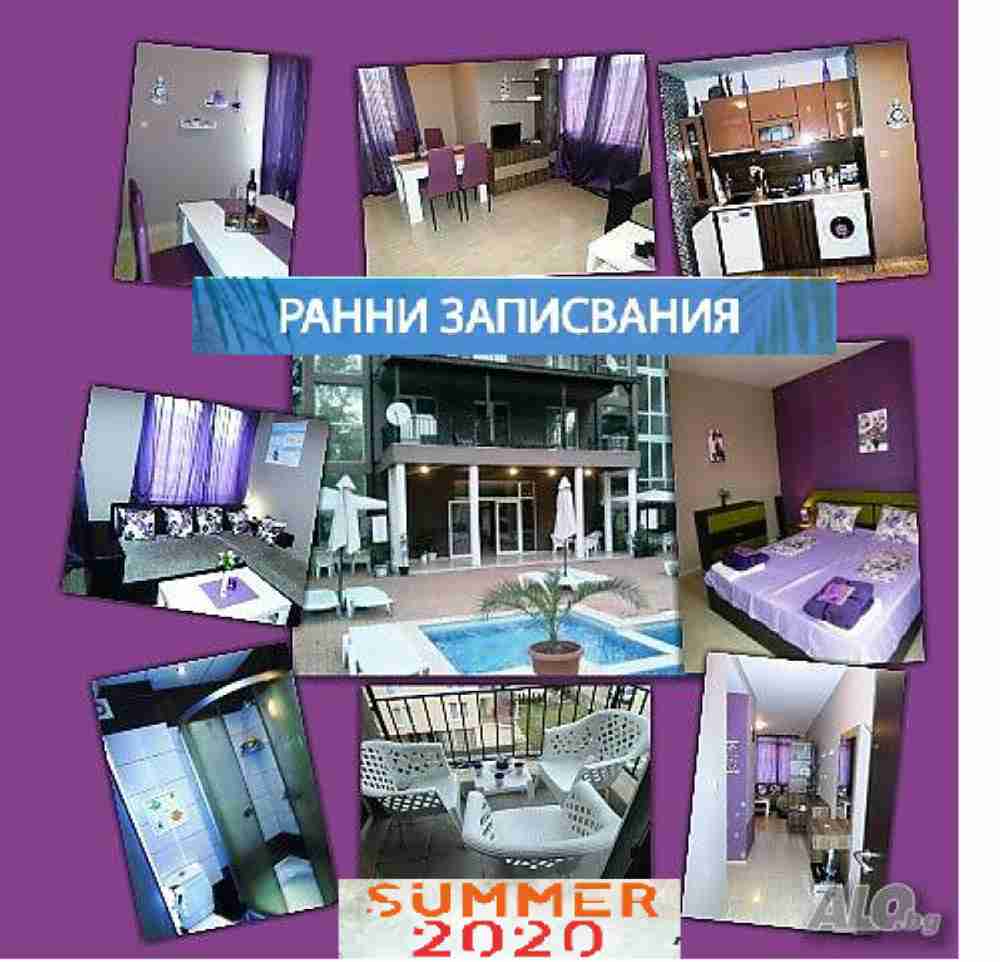 ... Апартаментът е с нови луксозни и стилни мебели, с напълно оборудвана кухня с ел. уреди- керамичен сензорен ел. котлон, ел. кана, блендер, тостер, хладилник, аспиратор и пералня, климатик, и LED телевизор и светеща LED термо душ слушалка в банята. РАЗПОЛАГА с отделна спалня и голям разтегателен диван за 2 човека, и при нужда разполага със сгъваемо подвижно легло и детска кошара. ОБОРУДВАНЕТО Е пълно и ново от най- необходимите домакински съдове, прибори и постелъчно бельо. Комплексът е нов, с 2 панорамни асансьора има голям двоен басейн, както и паркинг с паркоместа. Ползуването на басейните и шезлонгите е безплатно. На 50 м. се намира ДЕТСКИ АТРАКЦИОН и увеселителен парк за ДЕЦА. Нови услуги за сезон 2020г: Студио за масаж, кафе - бар, банкомат, отдава е под наем на велосипеди и електрически мотопеди