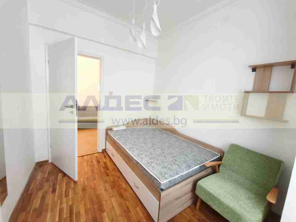 Имотът се намира на 2-ри етаж (първи над магазини) в солидна тухлена сграда от 40-те години. Апартаментът е преминал през пълен основен ремонт и очаква своите първи наематели с чисто ново обзавеждане.