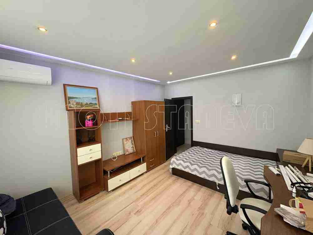 Апартаментът е в отлично състояние, с направен ремонт, вътрешна изолация и пълно обзавеждане, което го прави готов за нанасяне без допълнителни инвестиции.