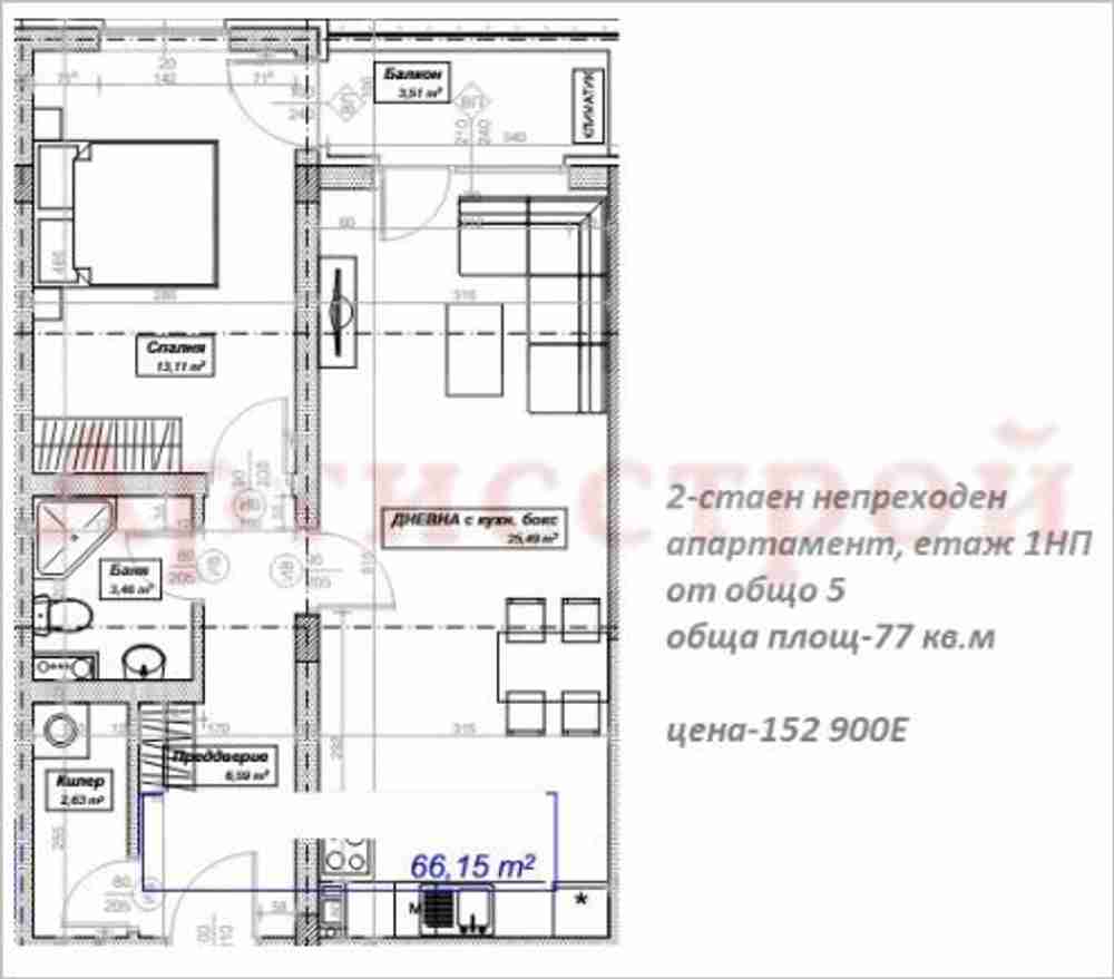 Агенция Артисстрой предлага: на вниманието Ви без комисионна, на разсрочено плащане двустаен непреходен апартамент с ЗП 59 кв.м на етаж 5 от общо 5 в поредната нова модерна сграда в строеж ,начален етап от доказан строител с пусков срок до 2027г . в кв.Дружба 2, с бърз достъп до летище.