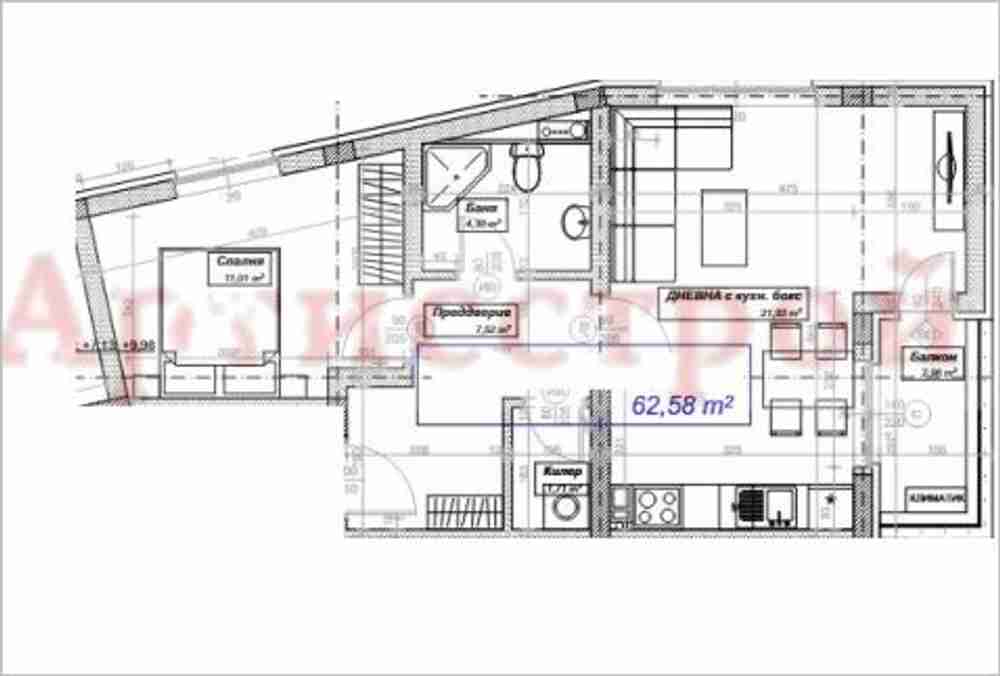 | Вид на имота | Двустаен апартамент |