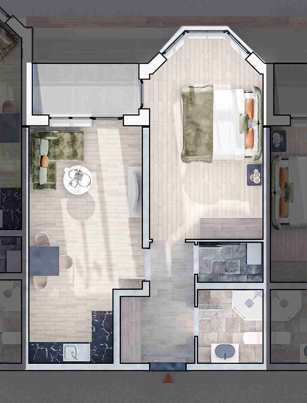 Предлагаме Ви двустаен апартамент в сградата. Обща площ 81.01кв.м. Чиста площ - 64.20кв.м.