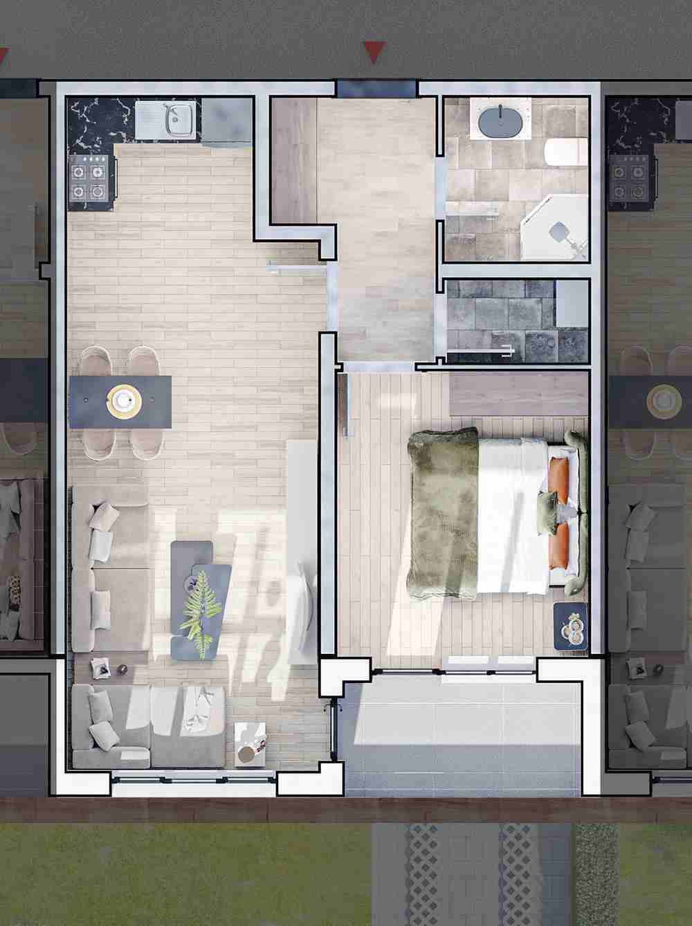 Предлагаме Ви двустаен апартамент в сградата. Обща площ 82.37кв.м. Чиста площ - 65,28кв.м.