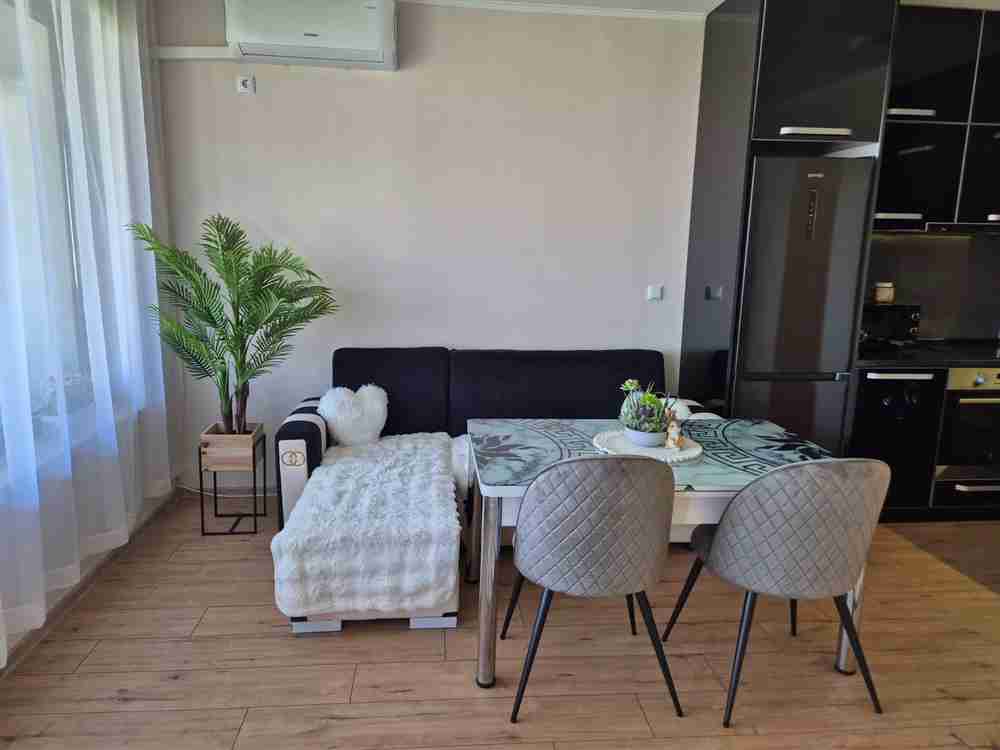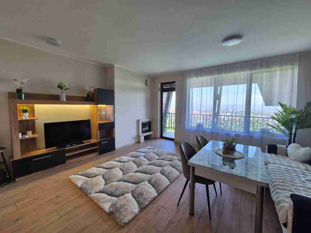 Описание: Страхотен напълно обзаведен апартамент с една спалня в к-с "Манастира", който се намира в един от най-предпочитаните квартали на гр. София - кв. "Симеоново". Този имот ще ви завладее с изтънчен вкус и модерен стил. Апартаментът е разположен на трети етаж, което осигурява обилно количество естествена светлина и гледка към Витоша и града през целия ден. Апартаментът е с функционално разпределение, съчетаващо комфорт и практичност, с изцяло оборудвана кухня с висок клас ел. уреди и смарт лед осветление.