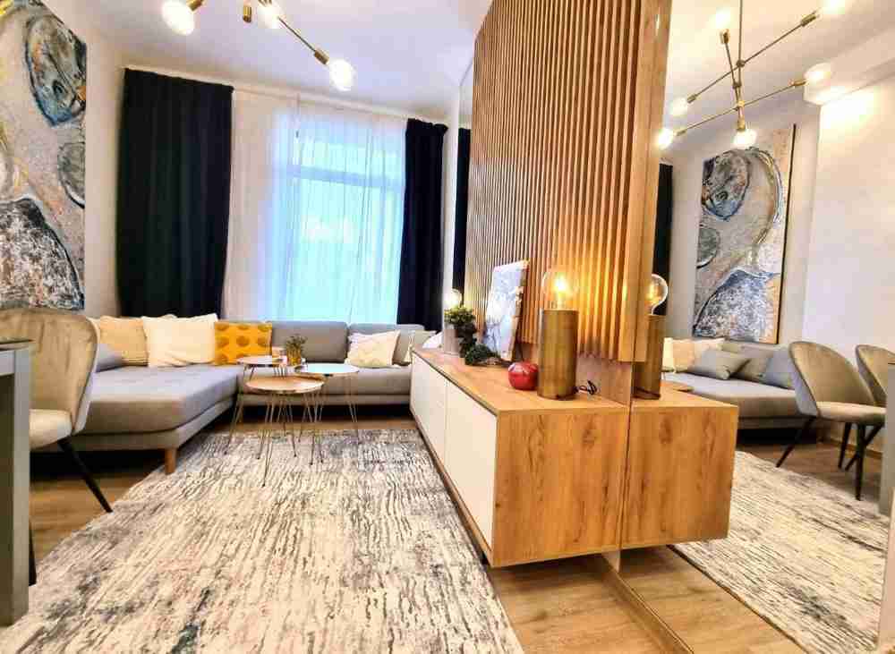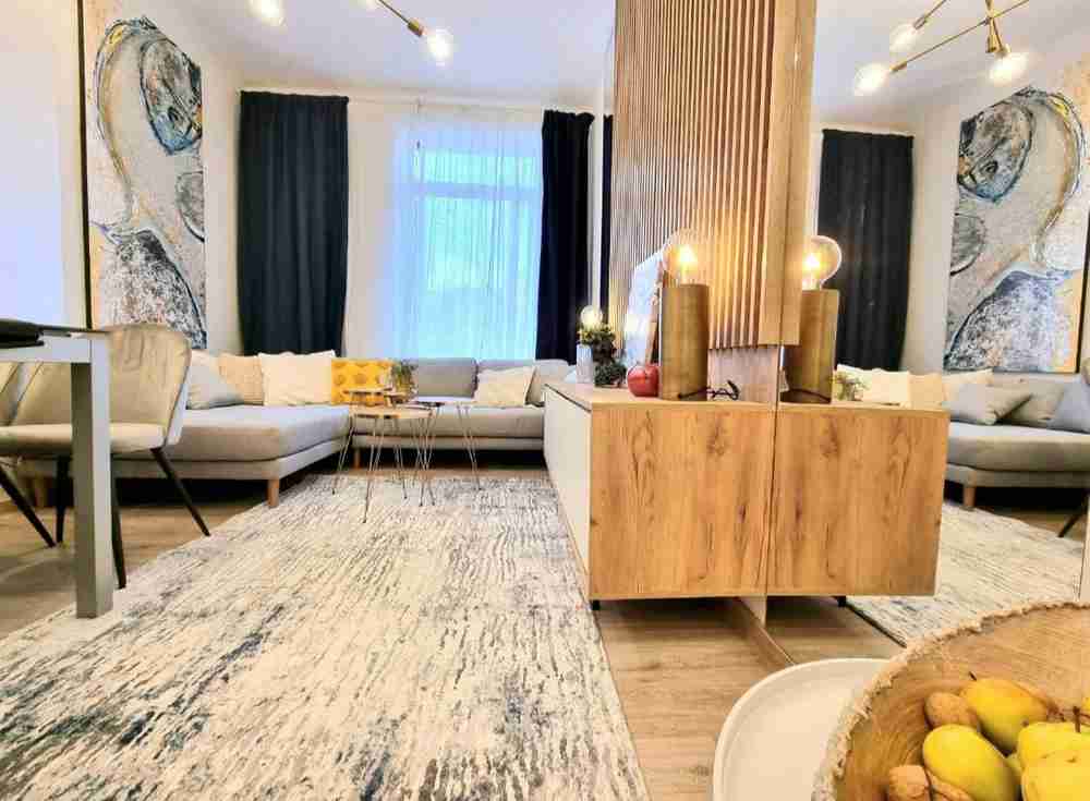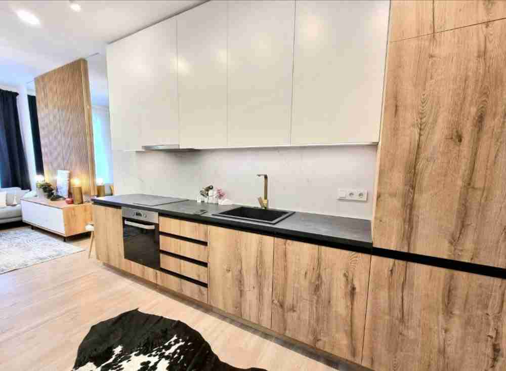 Описание: Дизайнерски двустаен апартамент с неповторимо усещане за самостоятелна къща с огромен прекрасен двор, самостоятелен вход само към това жилище откъм двора, тухла, на Симеоновско шосе, в затворен комплекс от няколко ниски сгради без такси. Жилището е след основен ремонт, сменени електро и ВиК инсталации, щрангове, нови PVC дограма, входна и вътрешни врати, много топъл, слънчев, светъл, с високи тавани 3м. Близо до Фантастико и Кауфланд, на много комуникативно място, 65кв. чиста площ, изцяло обзаведен. Нови уреди - вграден хладилник, вградена фурна, стъклокерамични котлони, мощен аспиратор, пералня. Кухнята е висок клас с вратички МДФ прахово боядисване, механизми на всички мебели са Blum, Hettich, с плавно затваряне. Баня с италиански гранитогрес. Разтегателна стъклена трапезарна маса. Спалнята е ХХL 200/200 с повдигащ механизъм, огромен 5-крилен гардероб с вградени чекмеджета, нощно шкафче, тоалетка, бутикови стени с декоративна мазилка, авторски картини. Има топло и сухо складово помещение под жилището с достъп пряко от стълбището на апартамента. Ползват се две паркоместа в двора на комплекса. Само за частни лица | |