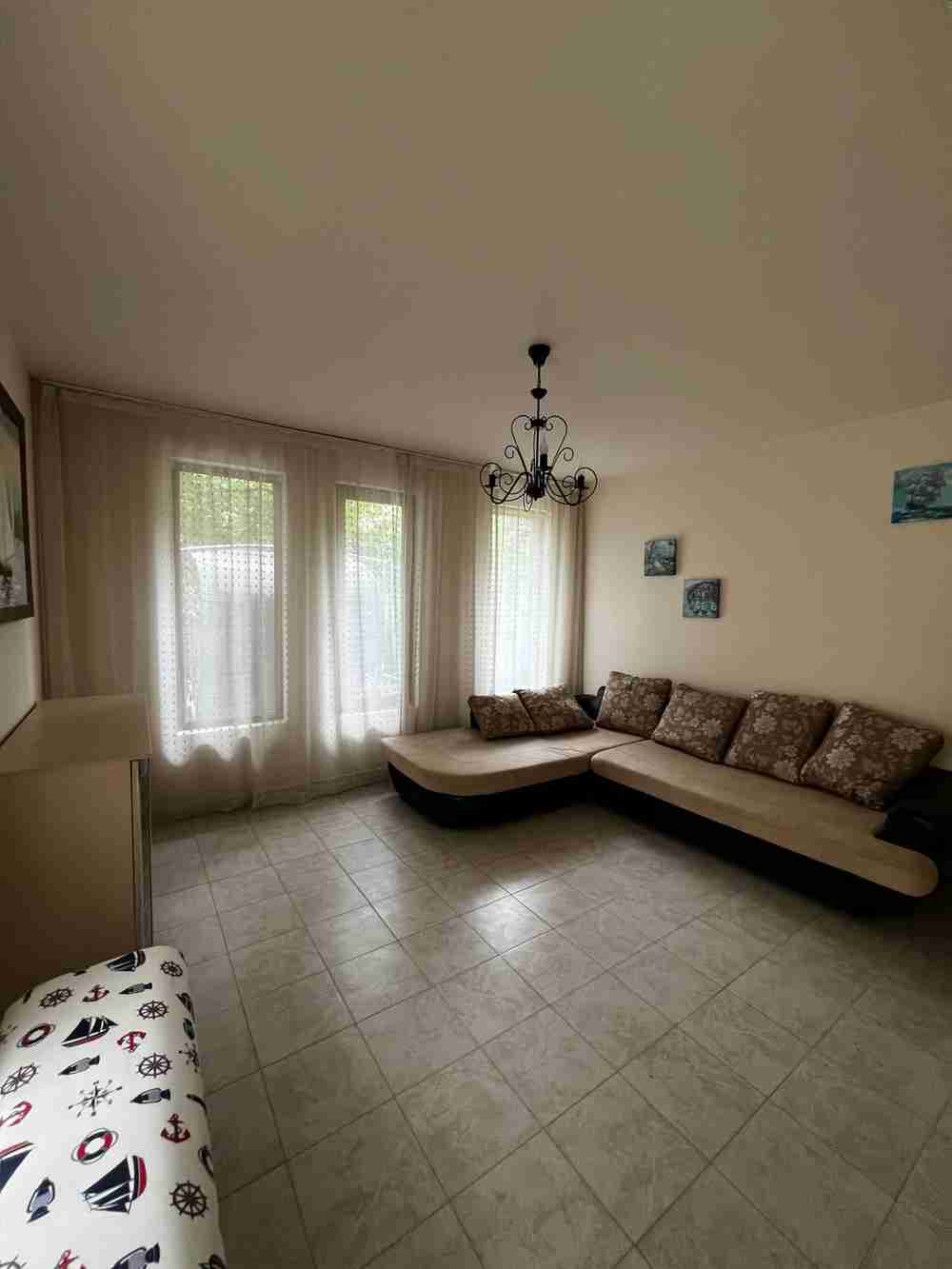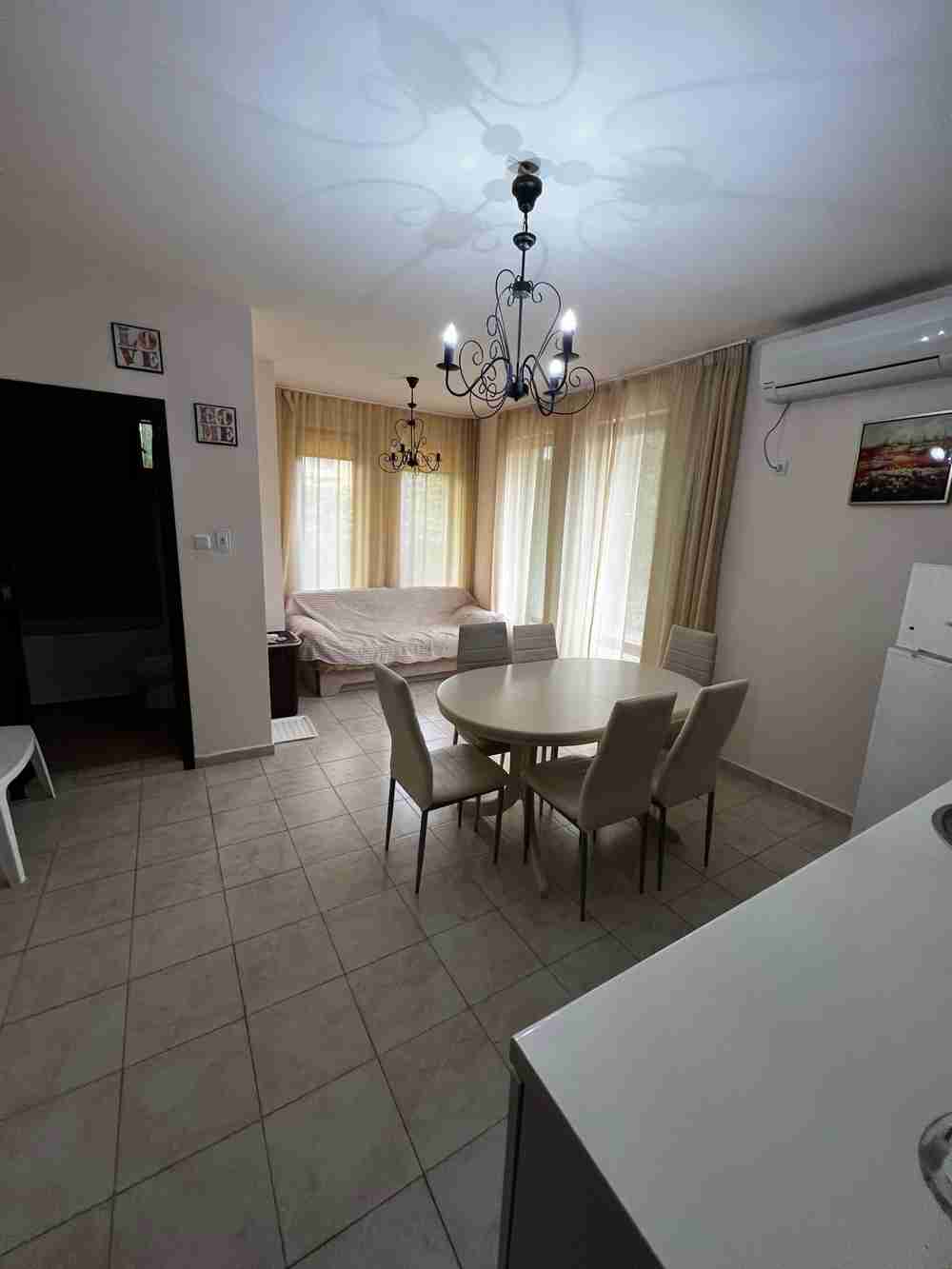 Двустаен апартамет с площ 71 кв.м. и прилежащ двор 70кв.м. Намира се на 100 м. от морето.