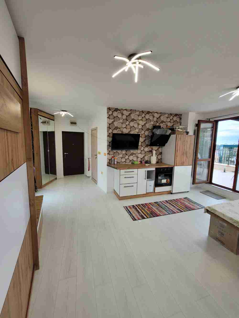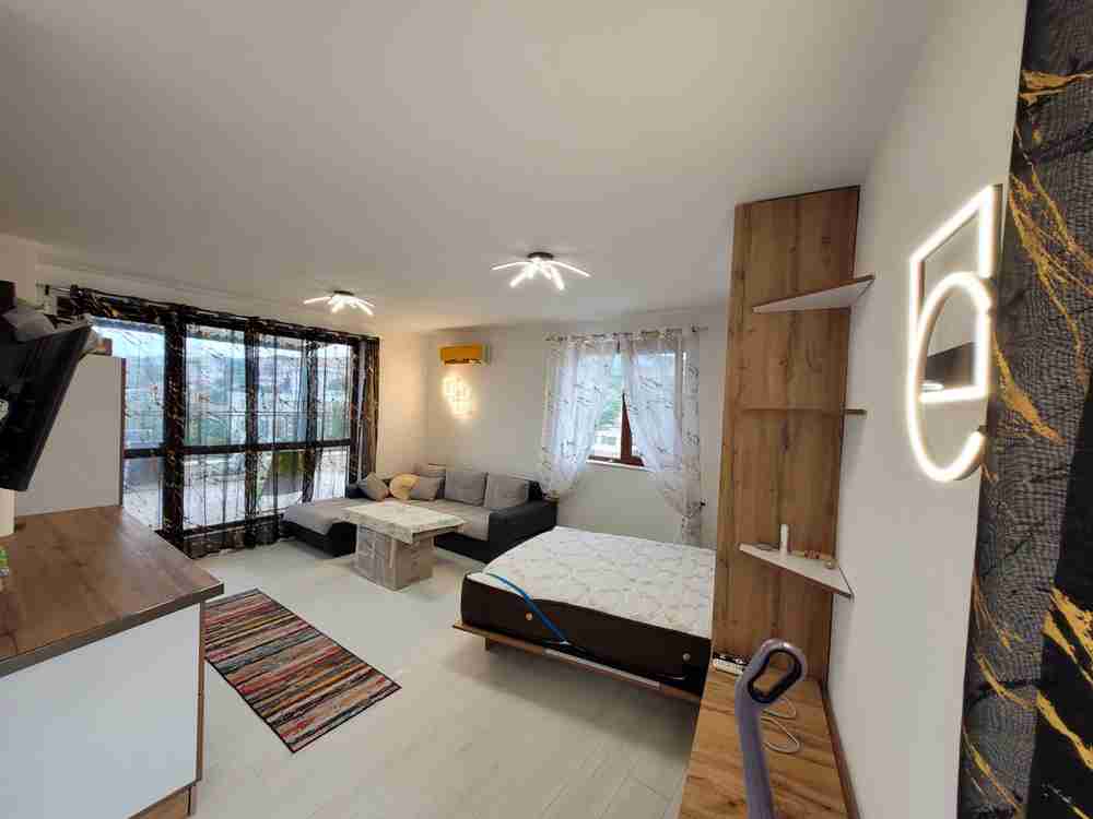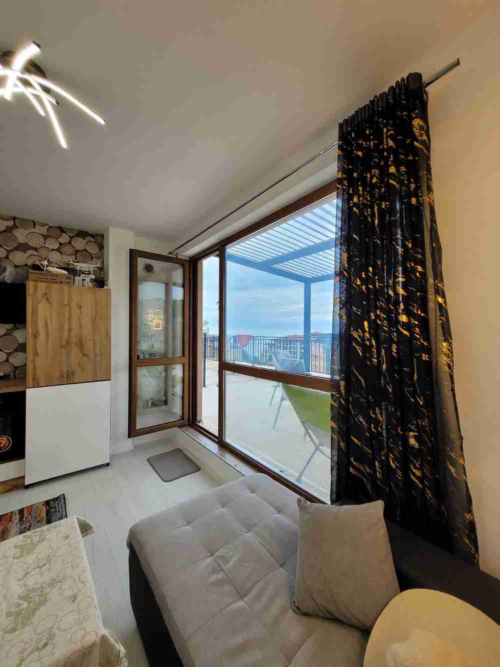 Описание: Продава се едностаен апартамент в гр. Бяла-112 кв.м , състоящ се от 36 кв.м застроена площ , която включва всекидневна, кухня, баня-тоалет, коридор и просторна тераса от 65 кв.м - с монтирана слънцезащитна Пергола , на която може да се насладите през горещите летни дни и има уникална панорамна морска гледка. Жилището се намира на 150 метра от плажа или 3 минути пеш , в тиха и спокойна среда в близост до центъра на града и всички удобства необходими за живеене целогодишно. Апартаментът е в отлично поддържана сграда, с 12.00лв месечна такса поддръжка. От голямата тераса се открива изключителна гледка, както към морето така и към града и околностите. В жилището никога не е живяно, преди 2 месеца му е направен ремонт и дизайнерско обзавеждане- всички електроуреди, чисто нови дивани и мебели неизползвани до момента и са в гаранционни срокове, разполага с хладилник, фурна за готвене, кварцови котлони, аспиратор, LED телевизор, климатик. Тъй като апартаментът е едностаен дизайнерът предложи функционална падаща спалня, която да се вписва в интериора. До 20 дни апартаментът ще бъде приключен с цялото ново обзавеждане. При интерес от ваша страна моля обадете се предварително, тъй като живеем на 150 км от гр. Бяла, тел: 0896161416 | |