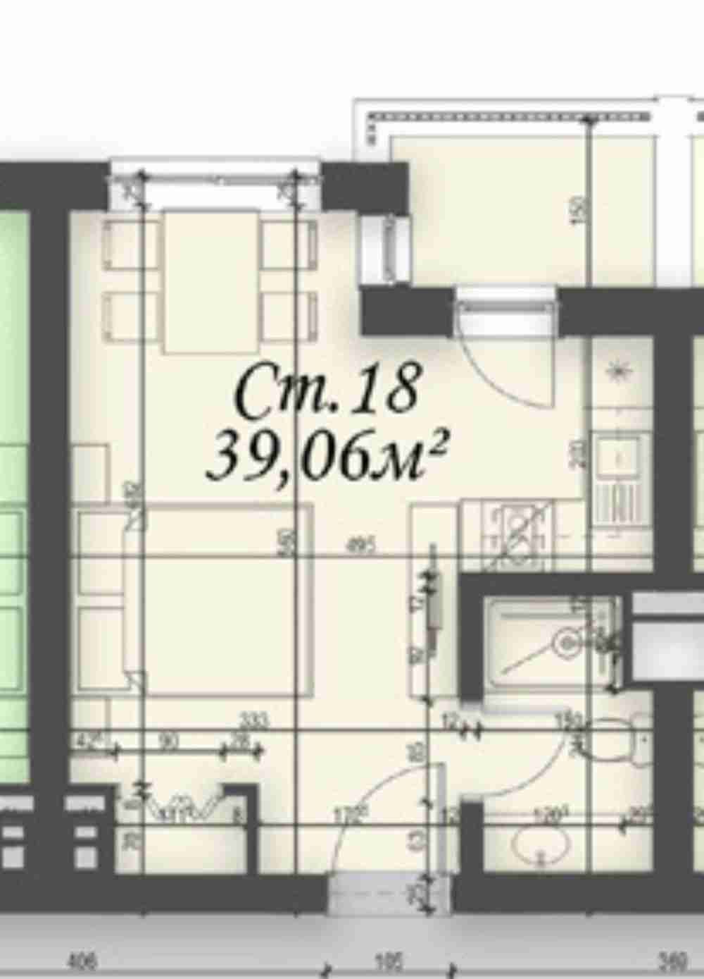 • Площ: 39,06 м²