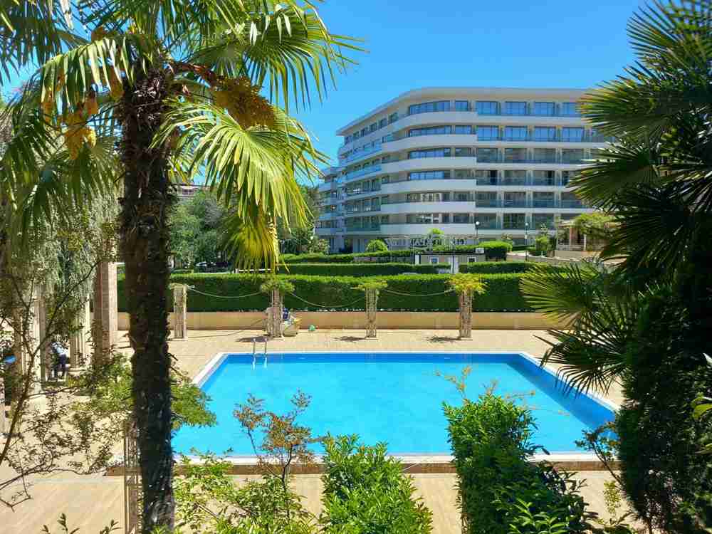 Апартаментът е с площ от 45 кв.м., изцяло обзаведен и оборудван, с всичко необходимо за едно домакинство. На разположение в комплекса са 4 басейна, ресторант, бар, зелени и добре поддържани общи части, контролиран достъп. Възможност за ползване или закупуване на паркомясто.