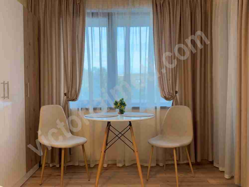 Описание: Екипът на Виктория имоти предлага на Вашето внимание прекрасен едностаен апартамент за покупка в центъра на град Велико Търново, разположено в близост до 5ти корпус на ВТУ. Жилището се намира в сграда ново строителство с добре поддържани общи части. Сградата е въведена в експлоатация /т.е. има Акт 16/. Самият апартамент е на междинен етаж с югоизточно изложение. Чистата му жилищна площ е 31,97 кв.м. разпределени между просторна стая с обособен кухненски бокс, трапезна част и спалня, банята с тоалетна в един обем и тераса. Обзаведено е изключително стилно и оборудвано с всички необходими мебели и електроуреди. Като за отопление и охлаждане има монтиран инверторен климатик. Този имот спрямо състоянието и локацията предлага много висока доходност при отдаване краткосрочно. Заповядайте на оглед!