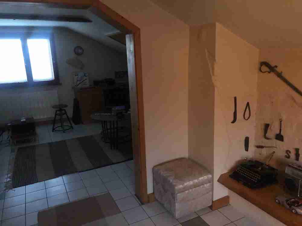 Описание: Продава се първи етаж от двуетажна къща заедно с ателие находящо се над втория жилищен етаж заедно с обособени към него идеални части от дворно място, с находящо се в него барбекю - 25 кв.м. И стопанска сграда от 50 кв. м. | |