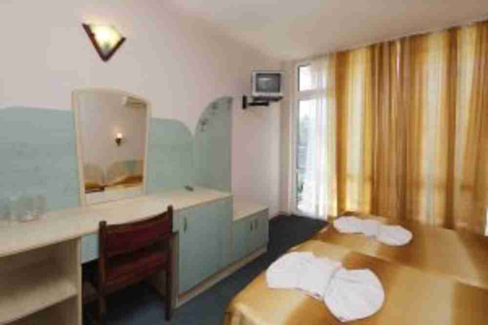 Описание: Хотелът се намира в източната част на Слънчев бряг. Разположен е на 200 метра от 8 километровата плажна ивица. РЗП - 6370кв.м. Двор - 4098кв.м. Разполага с 9 апартамента и 144 двойни стаи, открит басейн, ресторант с тераса на басейна лоби бар и пул бар,обменно бюро, сейф, рум сървиз,магазин. Всички помещения са оборудвани със самостоятелни WC и баня, прилежаща тераса и мини бар. От стаите може да се насладите на прекрасна гледка към морето и стария град Несебър.