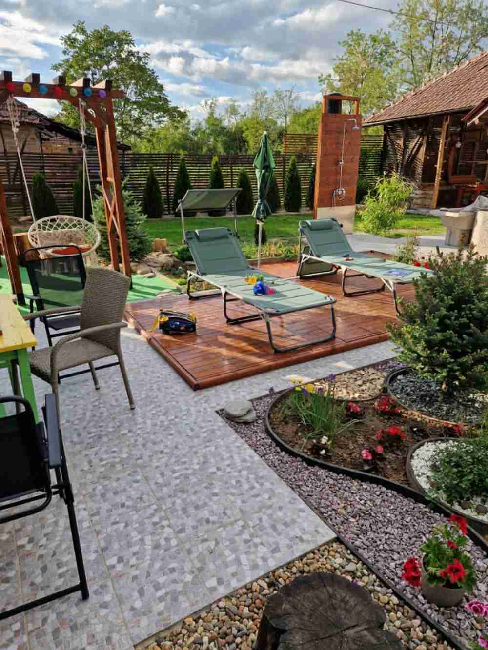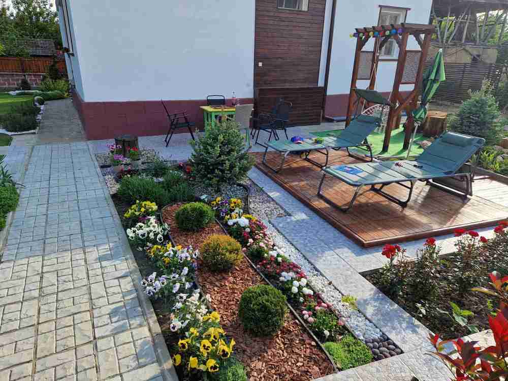 Имота е чудесно предложение за почивка и релакс. Напълно готов за ползване. Облагороден двор, който е с площ от 1000 кв.м. Изградени са различни зони за отдих, игри, барбекю, кътове за хранене и забавления. В двора има кладенец с помпа и много чешми. Озеленен и с много цветя. Възможност за паркоместа във вътрешния двор. Обособена е овощна градина.