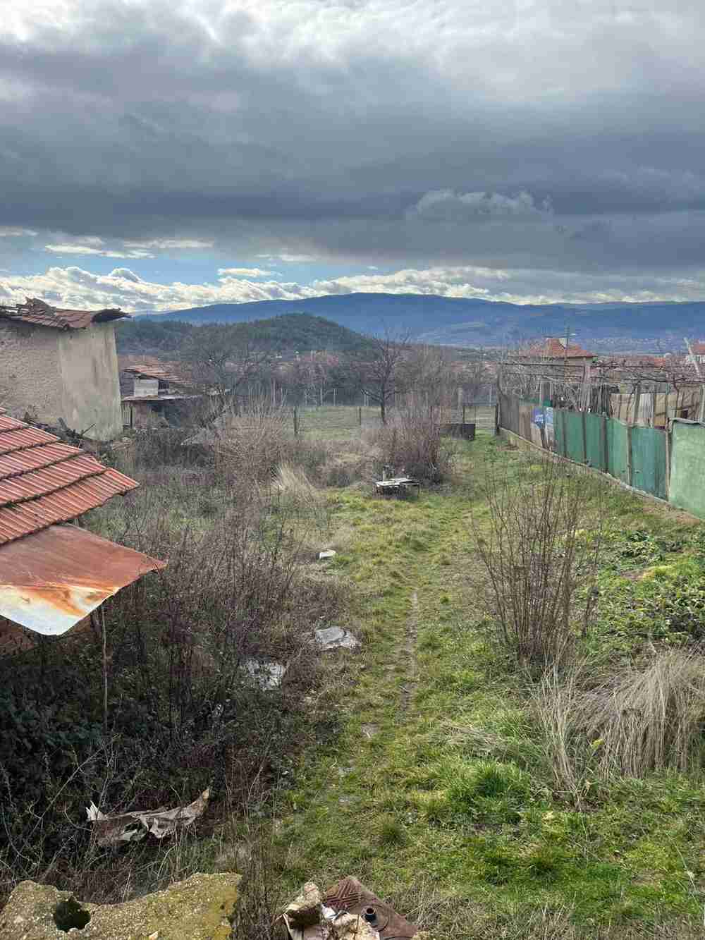 Предлагаме къща-близнак за ремонт с двор в живописното село Слатино, на тихо и слънчево място, с югозападно изложение и панорамна гледка към планината — отлична възможност както за постоянно жилище, така и за ваканционен дом.