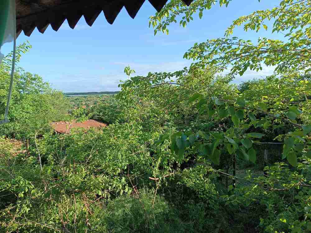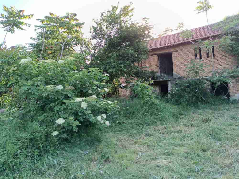 Дворното място е 1649 кв.м, ъглов парцел с панорамна гледка и овошки, стопанска постройка 80 кв.м. на два етажа по 40 кв.м., навес на един етаж и паркомясто, оградата е зидана.