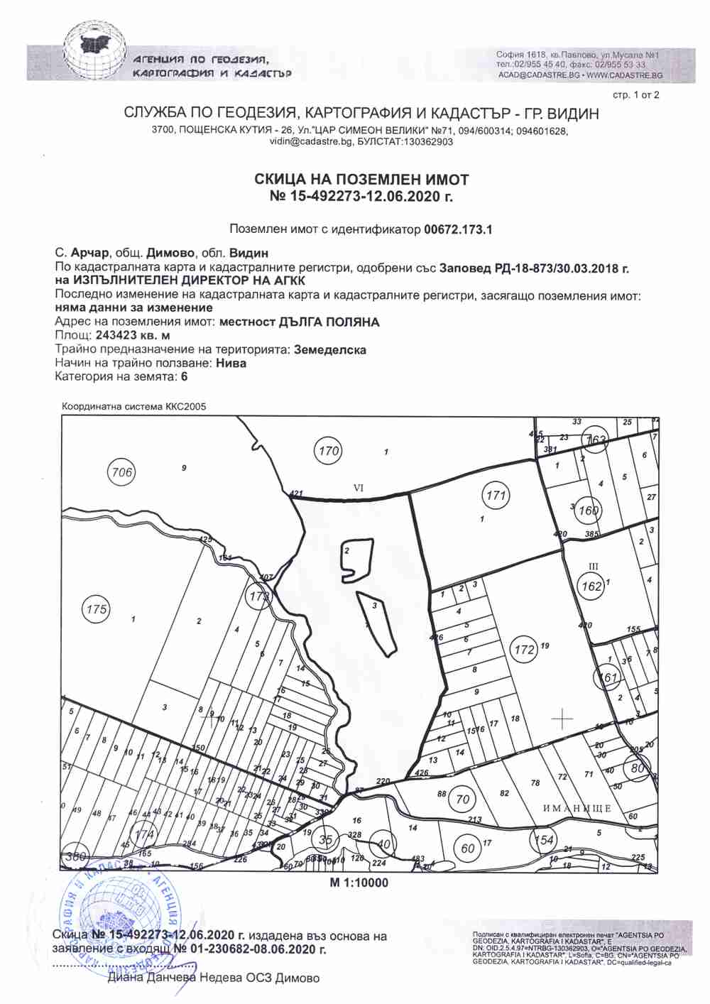 Описание: Продавам комасирана нива в с. Арчар, общ.Димово, обл. Видин с площ от 243 дка. Цена 520 000 евро. С аренден договор до 01.10.2025 г.