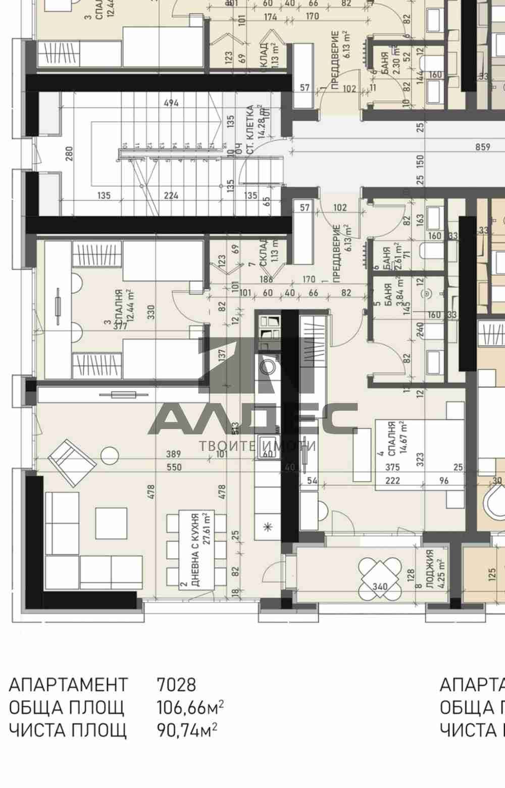 Описание: ФУНКЦИОНАЛЕН и СЛЪНЧЕВ тристаен апартамент в модерна нова сграда, със съвременна архитектура и високо качество на строителството! В затворен комплекс с контролиран достъп и озеленено междублоково пространство. На отлично място – в близост до Кауфланд, спирка на тролеи; трамвай; метро; Сградата е с приет Акт 14; срок на завършване – началото на 2027г. Луксозни общи части; асансьор; топла връзка до подземните гаражи; вентилируема фасада; Апартаментът е разположен на етаж 1 над партер от 18; РАЗПРЕДЕЛЕНИЕ: 106,66 кв.м обща площ; 90,74 кв.м застроена площ; просторен хол с трапезария и бокс; две спални; баня с тоалетна; тоалетна; един балкон - пред едната стая, с излаз и от хола; ОТОПЛЕНИЕ: ТЕЦ; ПОДОВИ НАСТИЛКИ: предава се на замазка и шпакловка; монтирана входна врата; PVC дограма; ИЗЛОЖЕНИЕ: 1 стая – Юг; хол – Ю/З; втора стая – З; Възможност за закупуване на подземен гараж; ЗА ПОВЕЧЕ ПОДРОБНОСТИ И ОГЛЕДИ: 0899 931 948, оферта 12019а | |