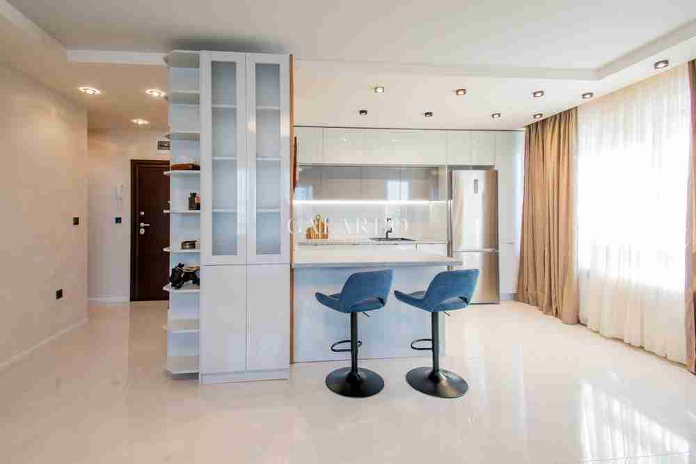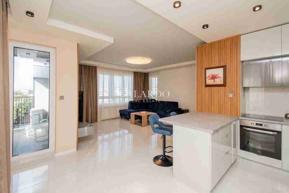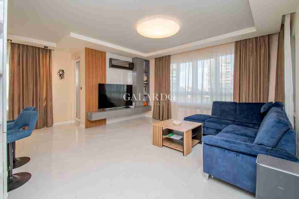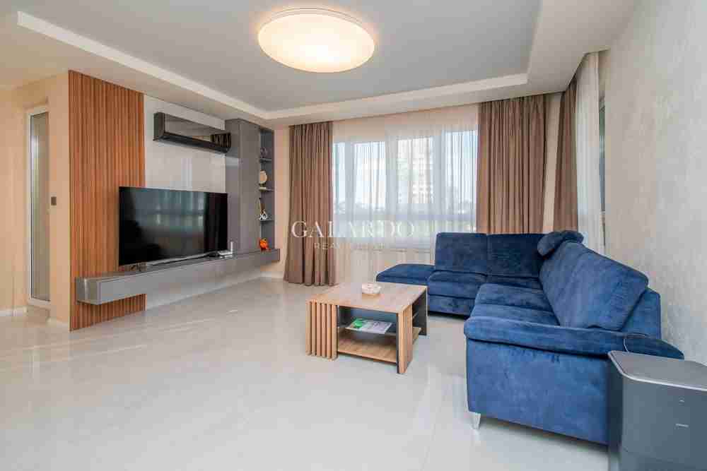 Описание: Страхотен напълно обзаведен просторен и слънчев тристаен апартамент, разположен на шести етаж от осем в модерна сграда, построена през 2023 г. Имотът е изключително стилно и луксозно обзаведен, поддържан в отлично състояние и готов за нанасяне. Жилището впечатлява със своята светлина и простор, както и с прекрасната гледка към Витоша. Локацията е изключително удобна – в непосредствена близост до Lidl, Bulgaria Mall , Paradise Center, бул. България, спирки на градски транспорт и метростанции. Районът съчетава спокойствие и удобство, като предоставя бърз достъп до ключови точки на града.