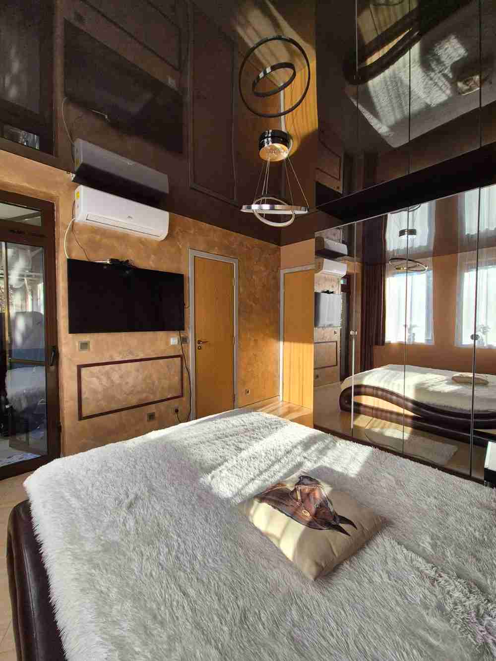 Описание: Страхотен напълно обзаведен апартамент с две спални и южни тераси в к-с "Манастира", който се намира в един от най-предпочитаните квартали на гр. София - кв. "Симеоново". Този имот ще ви завладее с изтънчен вкус и модерен стил. Апартаментът е оборудван с висок клас електроуреди и смарт осветление. Апартаментът е с локално отопление, във всекидневната има камина на био гориво, както и във всички стаи има монтирани висок клас климатици Mitsubishi. От всички стаи има излаз на прекрасни балко ни с панорамни гледки към града и планината.