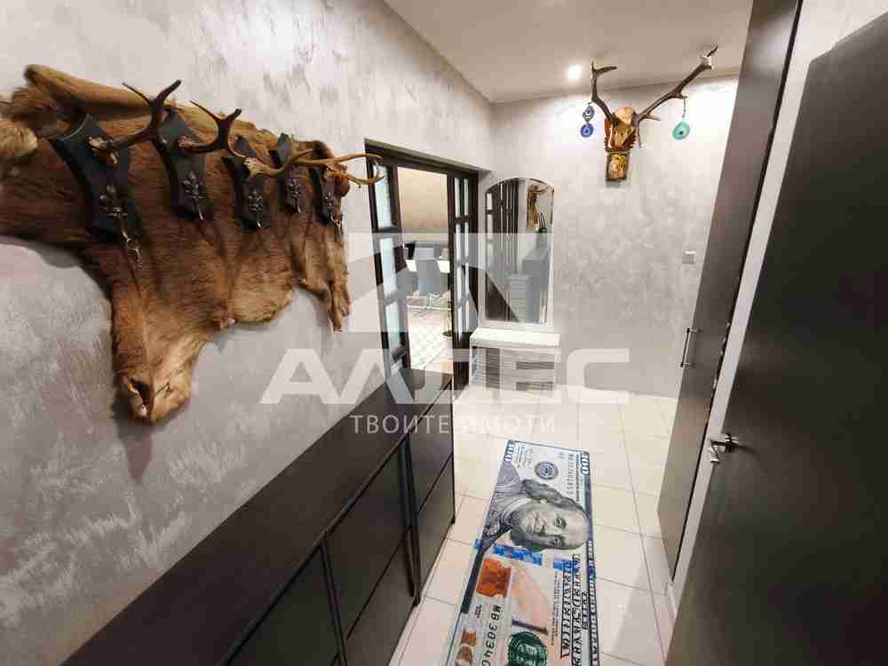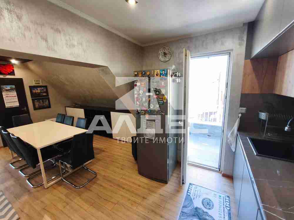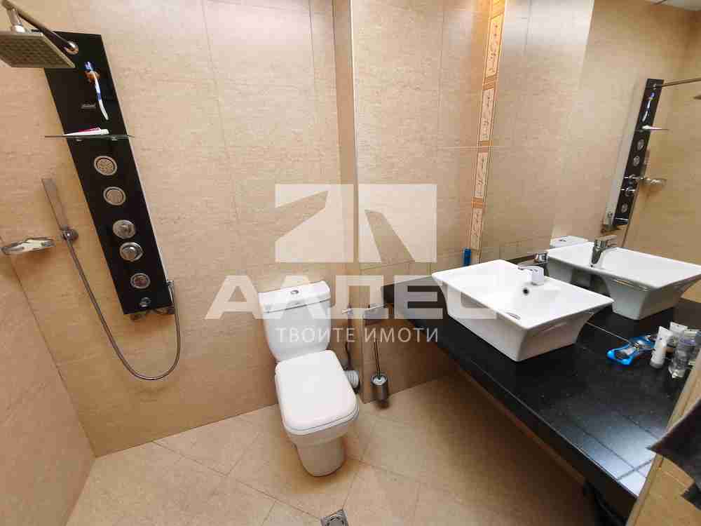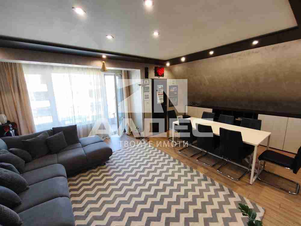 РАЗПРЕДЕЛЕНИЕ: Апартаментът е с чиста застроена площ от 119,73 кв.м (без общи части) и предлага отлично разпределение: просторен хол с трапезария и излаз на тераса, светъл кухненски бокс с отделна тераса с барбекю, две големи самостоятелни спални, всяка с излаз към обща тераса; баня с тоалетна и мокро помещение; отделна тоалетна; ПОДОВИ НАСТИЛКИ, СЪСТОЯНИЕ И ДОВЪРШИТЕЛНИ РАБОТИ: PVC дограма; хол и кухня ламинат; спални естествен паркет; коридор гранитогрес; санитарни помещения фаянс и теракота; ОТОПЛЕНИЕ: електричество - бойлер, климатици, радиатори Adax; ОБЗАВЕЖДАНЕ: Апартаментът се продава напълно обзаведен и оборудван готов за нанасяне или отдаване под наем. ИЗЛОЖЕНИЕ: хол запад; кухненски бокс север; спални изток; ДОПЪЛНИТЕЛНО: Към имота има мазе с площ 5,59 кв.м.