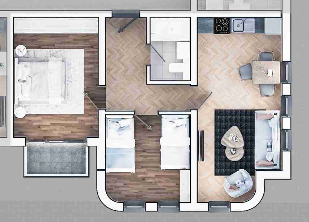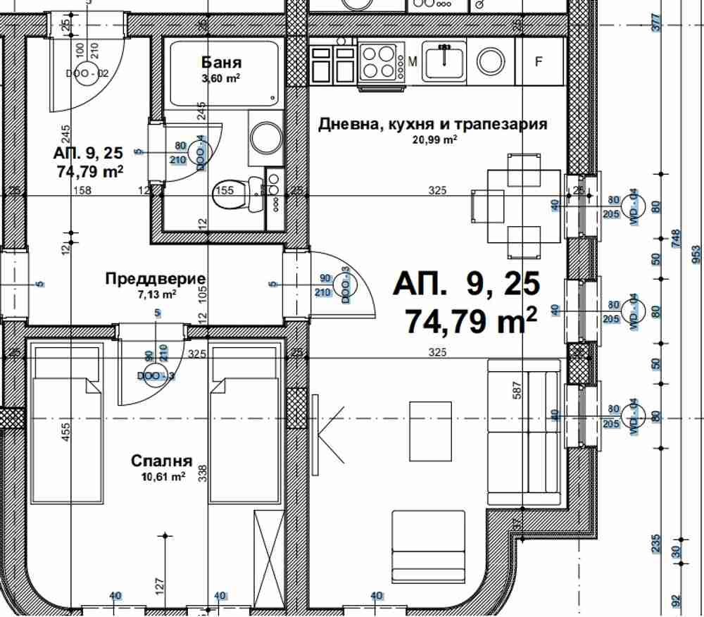 Предлагаме Ви тристаен апартамент в срадата с ОП - 97.30кв.м., ЧП - 74.79кв.м.